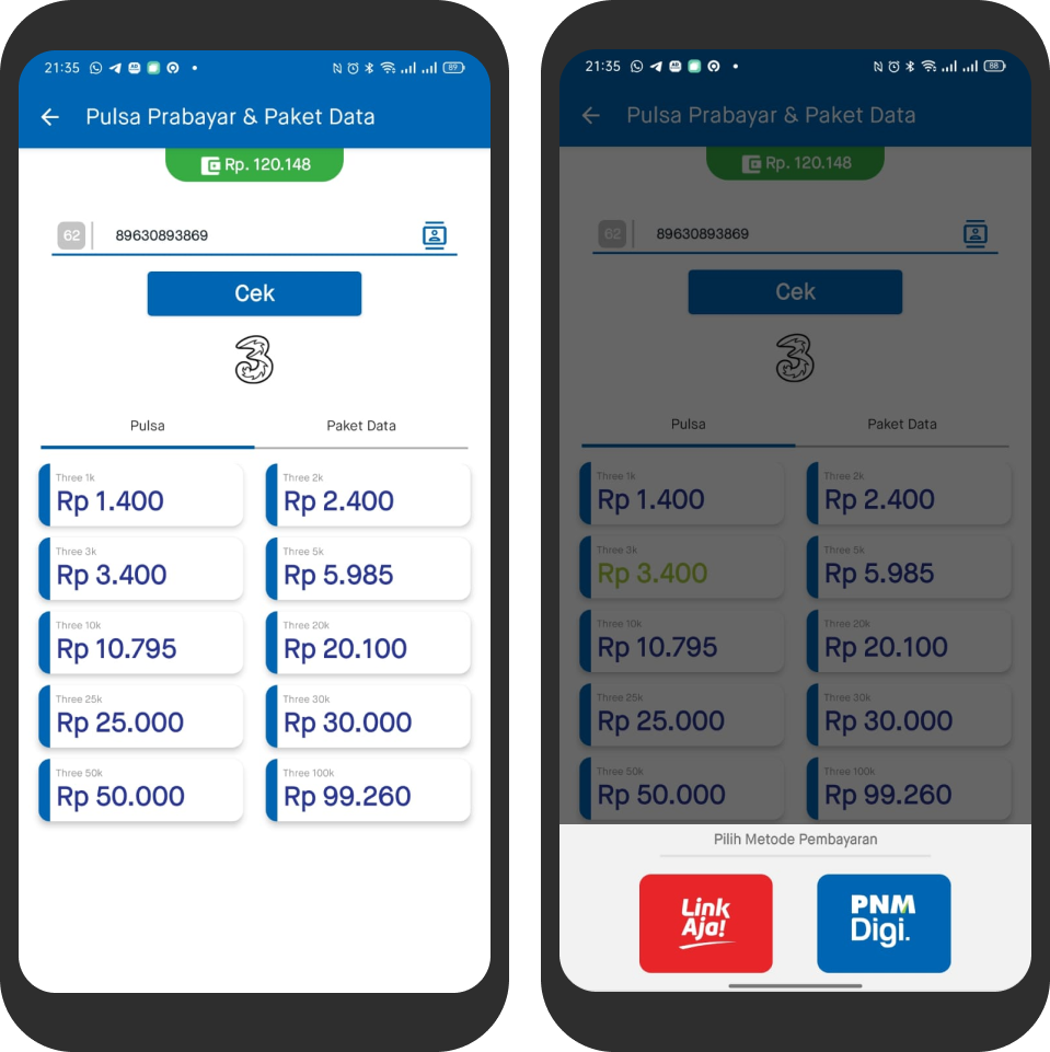 Purchase of prepaid and postpaid phone credit, as well as internet data packages.